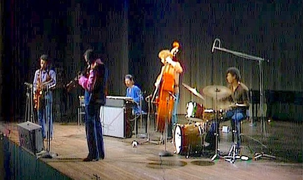 The previous quintet played tight and fast — their microprocessors were faster than yours and mine — like a sporty Italian convertible. The music turned on a dime from febrile to spare and meditative, and everything, even the explosions, was impeccably articulated. It was no coincidence that that band sported tuxes and bow ties. But in the yawning gap between 1967 and 1969, things had changed dramatically. Davis' band was now less like a finely tuned Alfa Romeo and more like a Camaro with no muffler, especially with the constant roar of the bass and drums. Where bassist Ron Carter and drummer Tony Williams would often drop out and let the other players set off on interludes, Holland and DeJohnette just established a relentless rhythmic undertow and the soloists blew over it with little subtlety. Hello, 1970s! Even their clothes tell the story: instead of the matching tuxes of only two years before, the band sports bell-bottoms. For better or worse, the music embodies the times — tumultuous and self-indulgent. Individually, the musicians are mostly brilliant but the combination just isn't strong at this broken place in Davis' development. The previous quintet wrung astonishing creativity from established forms; the new quintet was on the way to destroying those forms. The mercurial Shorter alternates between non-committal doodling and unabashed imitations of Coltrane's "sheets of sound"; it's not his night. But perhaps the prime offender is Chick Corea. While Corea's comping is interesting throughout the gig, his solos are a much different story — rather than developing anything thematically or taking the music into a compelling new direction, he simply plays neurotically fidgety little runs, dashing off the same kind of scrabbling solo on virtually every tune, the pianistic equivalent of a Cy Twombly painting. Midway through Davis' solo on "Bitches Brew" the band hits one of the evening's few solid grooves, but then everyone comes to a grinding halt during Corea's noodley, interminable solo — and rather yielding to a jazzy sense of space and dynamics, it just seems like the rest of the band collectively gives up on trying to play with him.