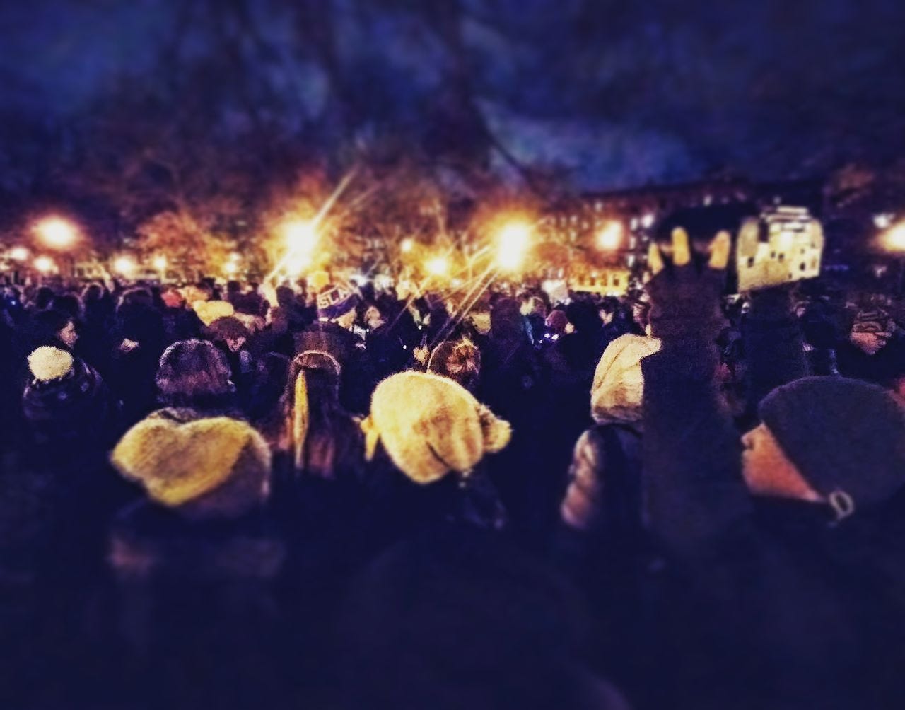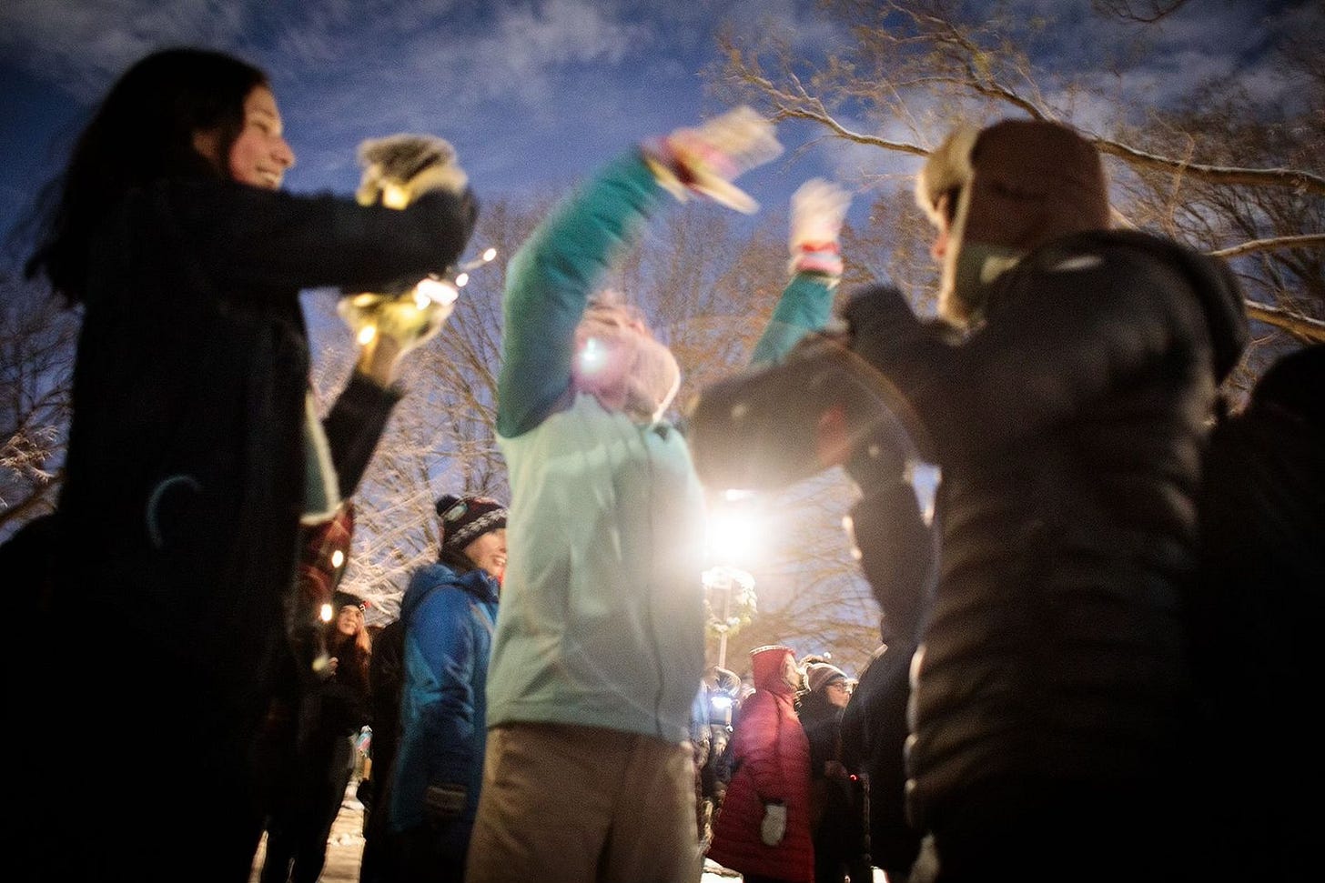"Unsilent Night" is a kind of mass performance art by people who might not usually perform. The folks toting the boomboxes and bluetooth speakers are each other's audience but, as with any performance, a big part of the fun is the feedback from the crowd: the people on the street who express amazement, amusement or bafflement as they get swallowed up in the procession, the drivers who stop and wait for this entire euphonious parade to cross the street, the folks who lean out their window to see what the hell is going on.It reminds me of another mass performance art piece: flash mobs. In 2003, large crowds of people would materialize around Manhattan and worship a gigantic animatronic T. rex in the Times Square Toys R Us or line up around St. Patrick's Cathedral and tell curious passersby that they were waiting for Strokes tickets. It was wholesale absurdism. But, like so many inventions, flash mobs had an interesting knock-on effect. This was still in the wake of 9/11, and a jolly group of people peaceably assembling felt like a way of asserting some of the freedoms that were eroding before our eyes. It reclaimed the idea that people are basically good, that they could plot and conspire not to do evil but to do something fun. "Unsilent Night" is a benevolent conspiracy too. As we're increasingly alienated from each other by our phones, by divisive media and by malevolent politicians, a general decline in socialization pervades our culture. It's gotten to the point where many people choose self-checkout so they don't have to make small-talk with cashiers. But we are literally social animals: face-to-face human interaction is essential for our psychological wellbeing. So gathering with a crowd of people to do something sweet and magical isn't just pleasant — it's a small-p political act. Appropriately for the season, "Unsilent Night" reminds that people can assemble in peace, for a little social communion, for the simple human pleasure of being in the same place at the same time as other people — and sharing a little joyful noise. To see if there's an "Unsilent Night" happening in your town, visit the website in early December. I'll remind you.