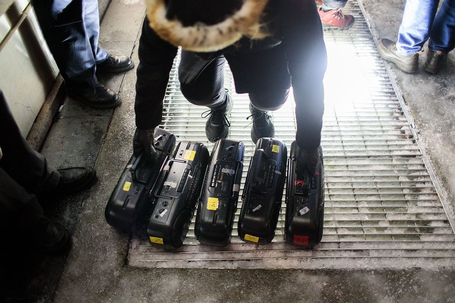 "Unsilent Night" is perhaps noted new music composer Phil Kline's greatest hit. And like all truly great hits, it's taken on resonances that perhaps its creator never quite anticipated. It started in 1992, when Kline envisioned "a public artwork in the form of a holiday caroling party" — but without the singing. So he composed a four-channel electro-acoustic piece that was a little under 45 minutes long — because that was the length of one side of a C-90 cassette tape — and then, that December, invited a bunch of friends to help him debut it on the streets of Greenwich Village. The New York Times and The New Yorker both listed the event and about 75 people showed up. Kline handed out a bunch of portable cassette players, each with one of four tapes in it, and told everybody to press play simultaneously. Then they started walking. "In effect," Kline has said, "we became a city-block-long stereo system." Kline decided to make it an annual event — and over the next 33 years, that city-block-long stereo system became several city blocks long, with hundreds of participants every year, and "Unsilent Night" has spread to 175 cities on five continents. In Manhattan, the piece begins at the famous arch in Washington Square Park on the second Sunday of December. The crowd gathers at 6:00 in the evening, with a lucky few early birds snagging one of Kline's dwindling collection of working boomboxes; many use the "Unsilent Night" app to play a randomly selected track through a bluetooth speaker, and some are just along for the walk. As she has since she was a little girl, Kline's now college-age daughter Clementine gives the instructions through a megaphone and then Kline himself leads the procession east through the park, around the fountain, through the NYU campus and across the East Village to the final destination, Tompkins Square Park. It's the same route every year, partly for the sheer ritual of it but mostly so Kline can time the march so everyone is in the park for the finale, a sublime, lambent passage aptly titled "Angels of Avenue A."