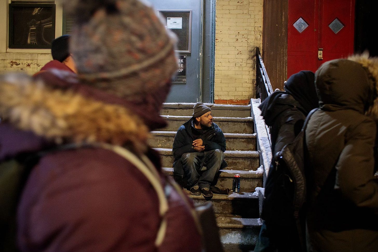 A lot of "Unsilent Night" is a sort of enchanted music of the spheres: what sound like tubular bells, cowbells, steel drums, and pointillistic chimes all ricochet around cold, hard city streets. Somewhere around 2nd Avenue, there's an interlude of long, reverberant choral voices and then back to a rippling tapestry of sampled church bells. At Tompkins Square Park, a sound like celestial steel drums with choir builds to a finale and then gently fades away; it's always fun to hear the last few speakers still going, stragglers who pressed play a little late. And then, always, every year, applause — applause for the piece, applause for Phil Kline, applause for each other.