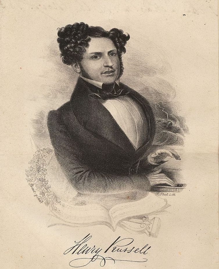 It's said that every person will someday be forgotten — even very famous people. So, while researching the Song of the Earth/"Old Folks at Home" post, I started wondering about other songwriters, besides Stephen Foster, who were big stars in the 19th century but are now very obscure. Turns out there were a few — and one of them was Henry Russell. I'd never even heard of him before but he wrote some of the most popular songs of his time. A classically trained singing Englishman, Russell came to America in 1833, when he was about 20 years old, seeking musical fame and fortune. Early in his eight-year tour of North America — just imagine what that must have been like! — he hit upon a winning commercial formula: